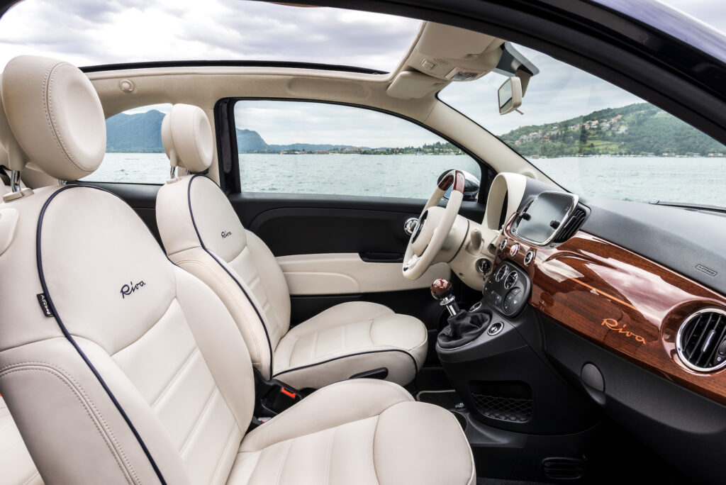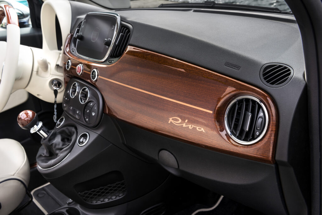 Słynny włoski „maluch” uzyskał z tej okazji luksusowe dodatki i wykończenie spotykane dotąd tylko w rivach. Na potrzeby ekskluzywnej serii opracowana została nowa deska rozdzielcza wykonywana z mahoniu i inkrustowana drewnem klonowym. Wszystko w nim ma nawiązywać do kultowych jachtów z Sarnico. Od wspomnianych dodatków drewnianych, których jest oczywiście więcej (fragment kierownicy, specjalne listwy, itp.), do ekskluzywnego koloru niebieskiego „sera”, opracowanego tylko i wyłącznie dla tej serii. Nawiązuje on bezpośrednio do koloru flagowego modelu włoskiego producenta jachtowego. Nawet 16 calowe felgi z lekkich stopów mają wstawki z tej samej barwy. Dla podkreślenia związku dwóch najbardziej znanych ikon włoskiego przemysłu motoryzacyjnego, w Fiacie 500 Riva, jako jedynym w gamie produkcyjnej, logo własne ustępuje miejsca logu innej legendy. Czyż nie pięknie się prezentuje jako np. lądowy tender jachtowy?