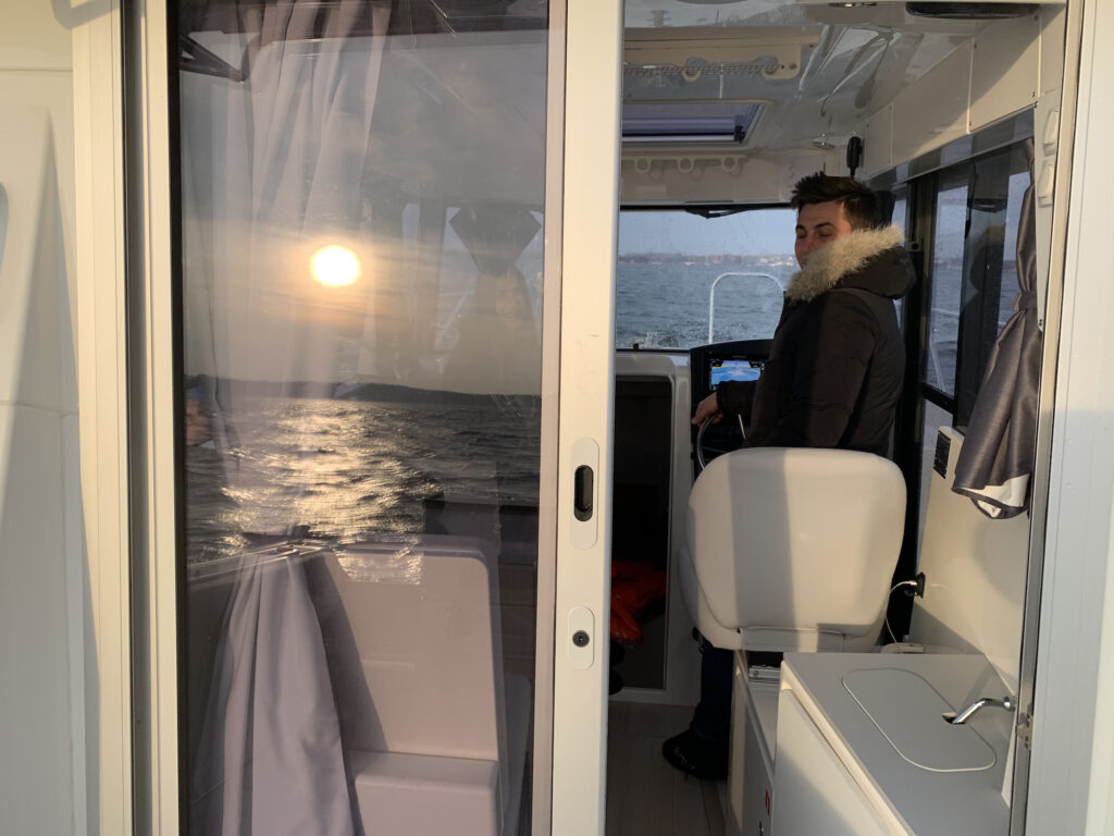 Quicksilverem 805 Pilothouse już pływałem, podczas wrześniowych testów we Francji, ale tamten miał silnik o mocy 225 KM, a tu do dyspozycji było 300 KM. Do tego, zima, Mazury, pływanie… kto wie, kiedy znowu uda się wyjść na wodę?
