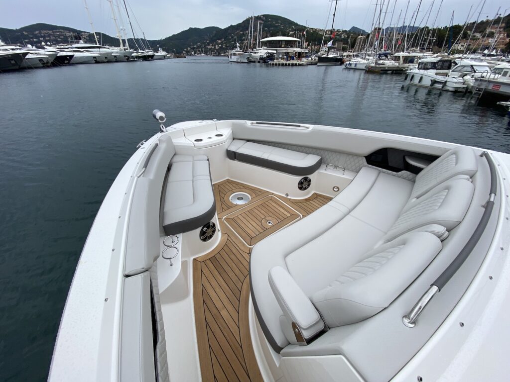 Testowany jacht napędzany był najmocniejszym, dostępnym dla tej jednostki zestawem silników, 2 x MerCruiser 8.2l o mocy 430 hp każdy. Ważący ponad 7 t jacht rozpędziliśmy do prędkości ponad 37 węzłów. Mimo dosyć słabej, jak na Lazurowe Wybrzeże pogody, bawiliśmy się doskonale.