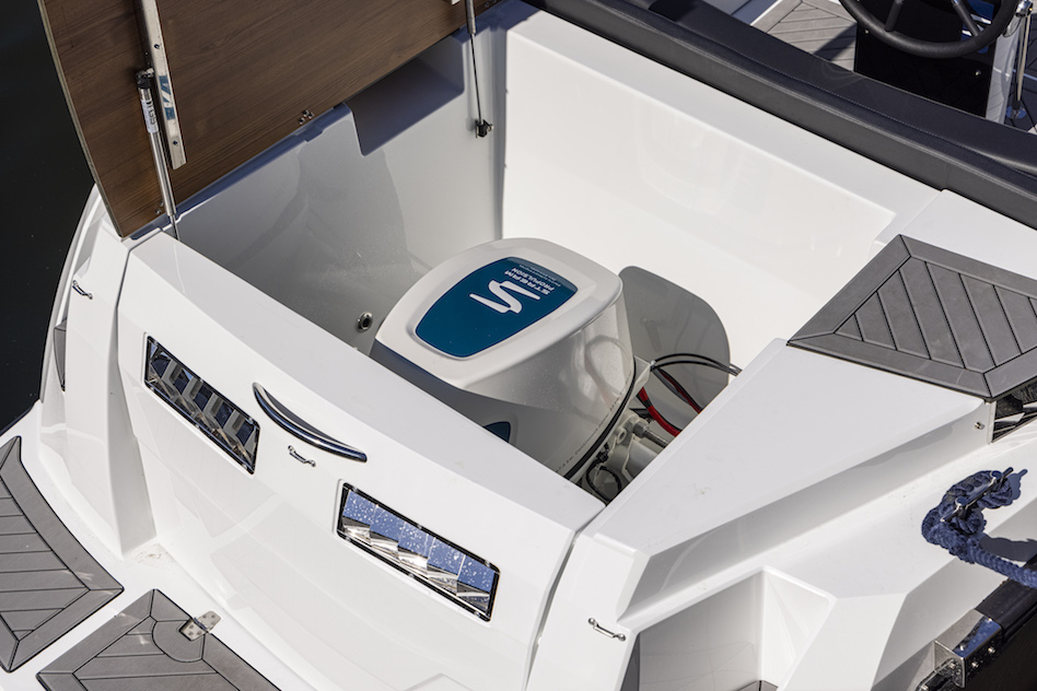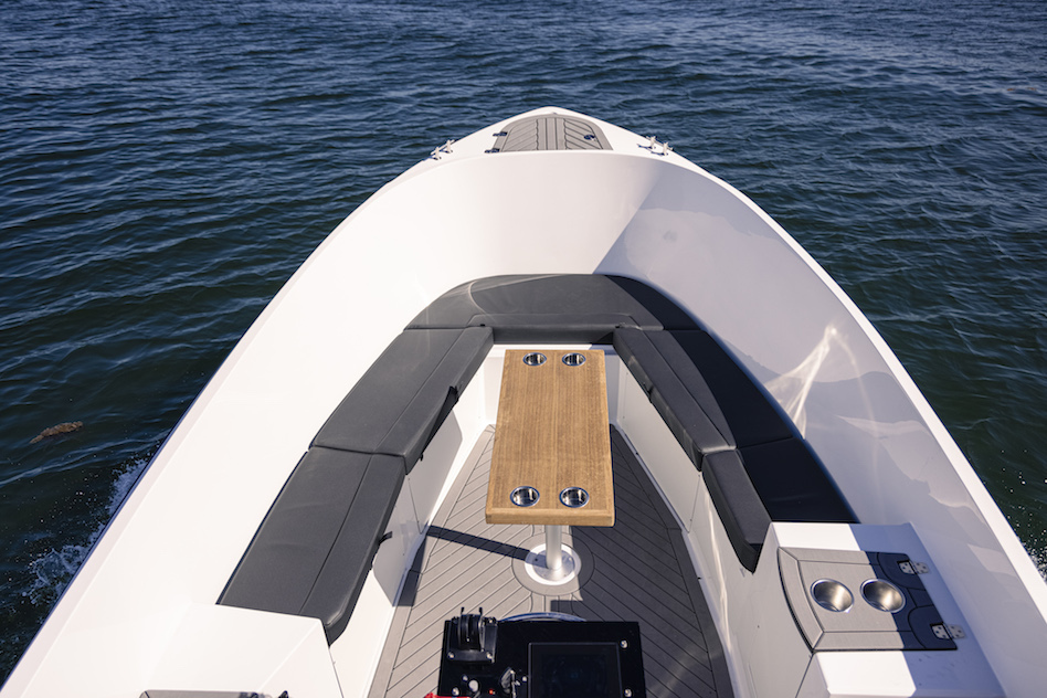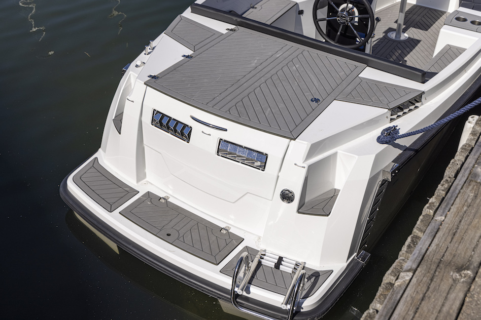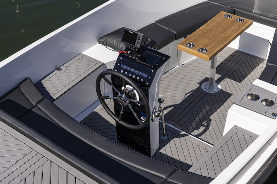 Łódź ma obszerny otwarty pokład otoczony kanapami i wysokimi burtami. Na środku znaduje się duży składany stół. Stanowisko sternika to niewielka konsola umiejscowiona centralnie w rufowej części pokładu. W tylnej części łodzi jest niewielka platforma kąpielowa i wysoki pokład, pod którym zamontowany jest elektryczny silnik.