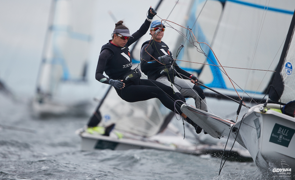 W klasie 49erFX od kolegów nie chciały być gorsze Gabriela Czapska i Hanna Rajchert. Zawodniczki ze stolicy były po pierwszym dniu mistrzostw 21., jednak w czwartek rozpoczęły ściganie od mocnego akcentu, czyli od wygrania wyścigu w swojej flocie. Później zameldowały się na mecie na ósmym i 10. miejscu, dzięki czemu wśród 54 załóg z 15 krajów plasują się na 10. pozycji. W tym gronie są także duety męskie i mieszane, ale w mistrzostwach świata uwzględnione będą tylko kobiece ekipy – w tej najważniejszej klasyfikacji Polki plasują się na 6 miejscu.