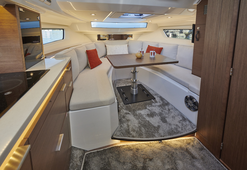 W kokpicie znajduje się składany stół i 3-osobowa kanapa wzdłuż rufy. Siedziska pozostałych dwóch kanap są ładnie ukryte w burtach. Po ich rozłożeniu, w kokpicie mamy dużą jadalnię z kanapą w kształcie litery “U” i dużym stołem.