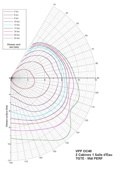 | powierzchnia żagli głównych (masz standardowy – genua (furling) 105 %, grot (furling/classic) | genua 105% – 34,3 m² / grot – 34,7/41,80 m² |