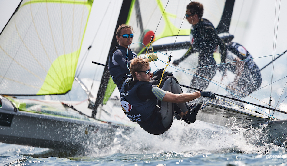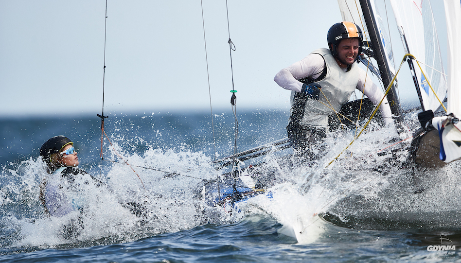 W Gdyni w klasie 49er rywalizują jeszcze dwie polskie ekipy. Adam Głogowski i Maciej Krusiec (Nauticus YC Olsztyn) zajmują 12., a Mateusz Ksobich i Patryk Różak (OŚ AZS Poznań) 39. lokatę.