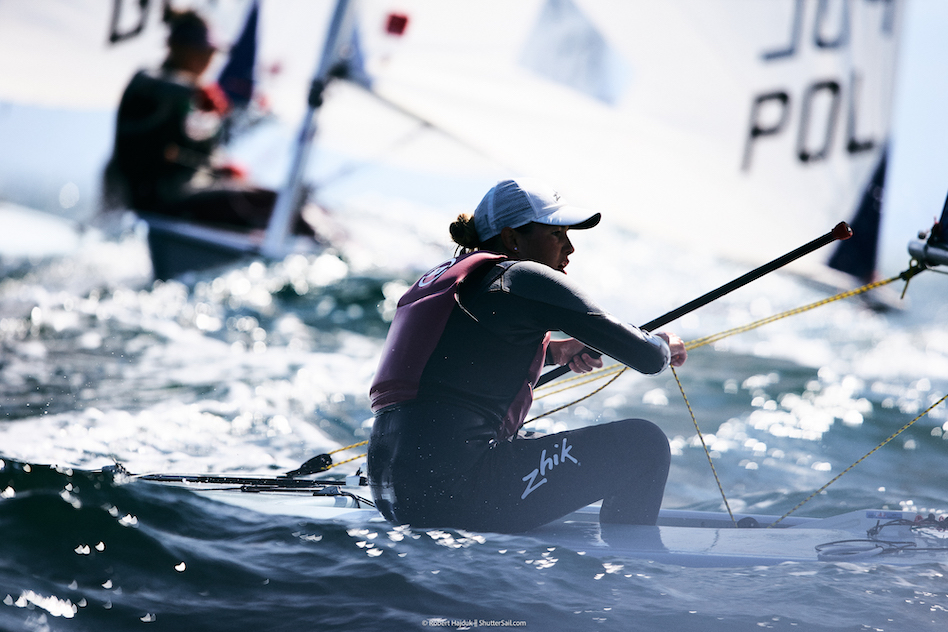 W klasie Laser Radial, po wczorajszym bardzo udanych wyścigach, po których zajmowała pozycję liderki, dzisiaj Lilly May Niezabitowska (Jacht Klub Kotwica Tarnobrzeg) musiała „oddać żółtą koszulkę liderki”. Miejsca 17 i 21 zepchnęły Polkę na szóste miejsce, ale kontakt z czołówką został zachowany. Dobrze zaprezentowała się dzisiaj także Julia Rogalska. Zawodniczka Giżyckiej Grupy Regatowej zaliczyła dwa wyścigu w środku drugiej dziesiątki i awansowała na 17 miejsce w klasyfikacji generalnej.