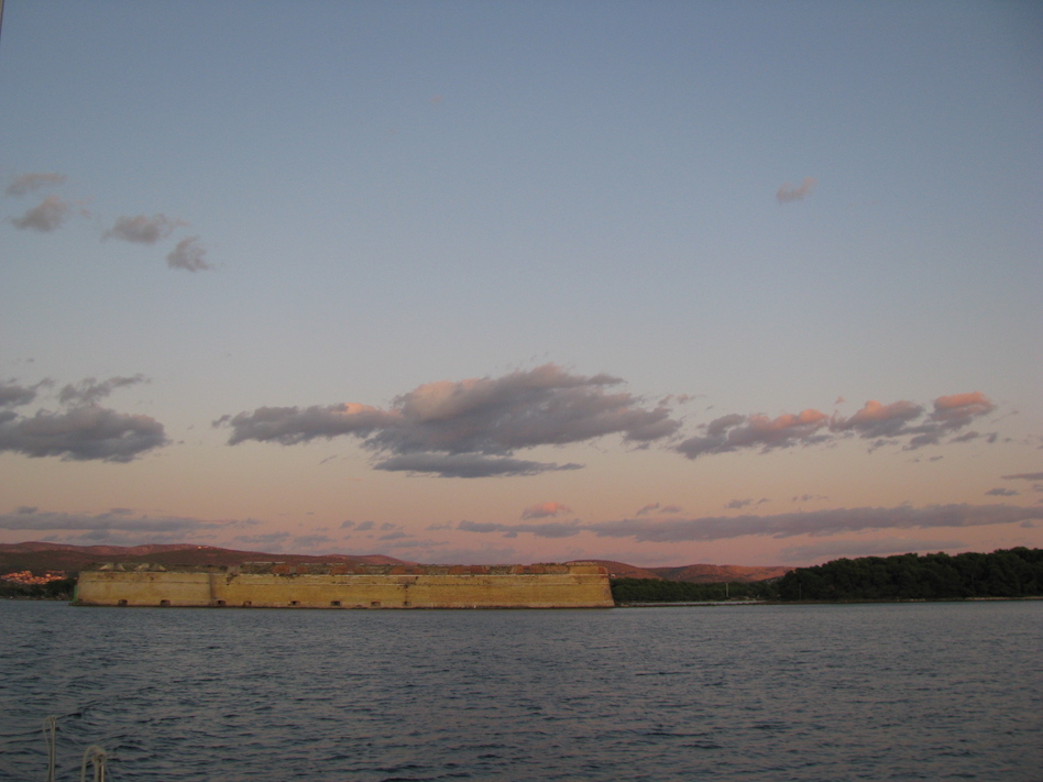 Opuszczając zatokę Sibeniku kanałem św. Antoniego, mijamy mury obronne – Fort św. Mikołaja. Został zbudowany w XVI wieku przez Wenecjan na miejscu zburzonego klasztoru. Forteca miała bronić Sibenik przed Turkami. Służyła rożnym wojskom aż do 1979 roku. W rejonie Morza Śródziemnego są jeszcze tylko dwie tego typu budowle: na Malcie i w Wenecji.
