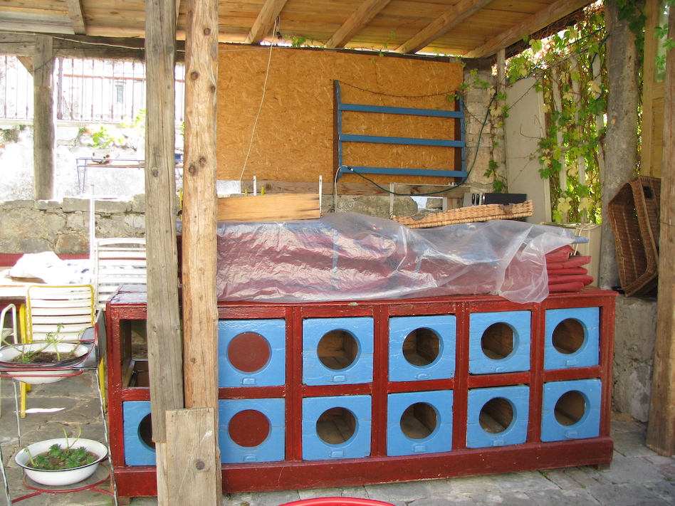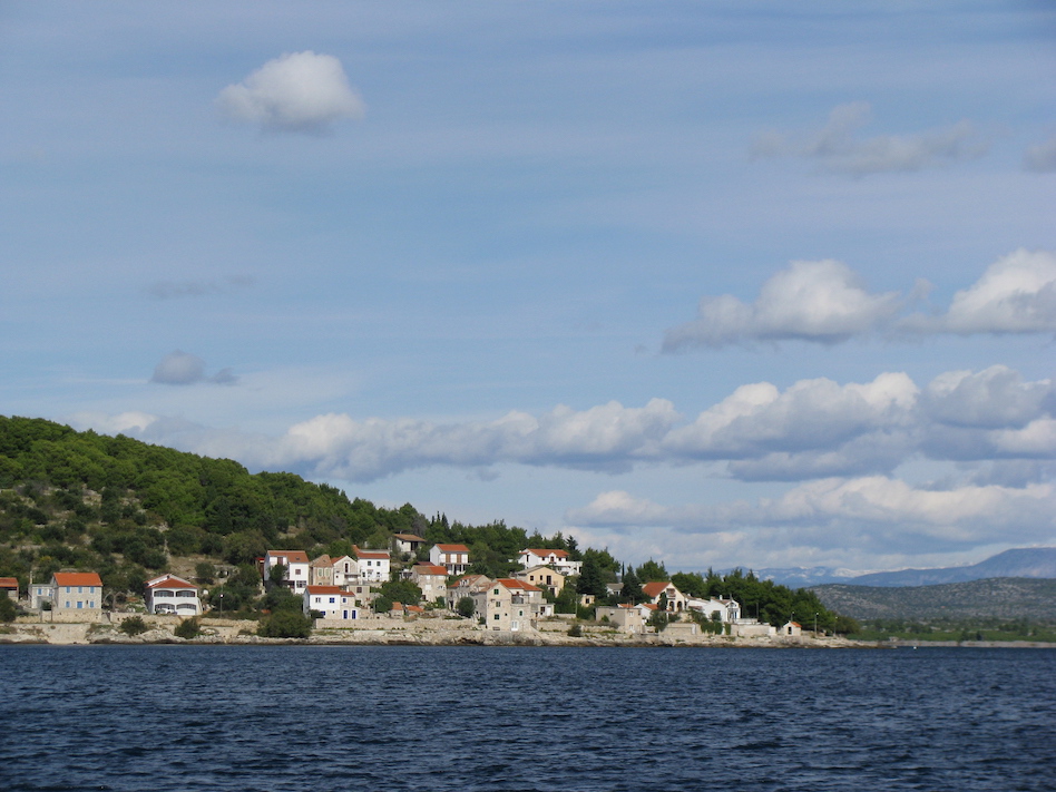 Cała wyspa to kamienie i makia gdzieniegdzie tylko gaje oliwne i małe winnice. Sama wioska przycupnęła pomiędzy brzegiem morza a zboczem pobliskiej góry. Ale nie sprawia wrażenia biednej. Nabrzeże równo wybetonowane, a w małych boksach stoją łodzie rybackie wszystkie jakby świeżo pomalowane na biało. Przy kei prąd i woda bez problemu.