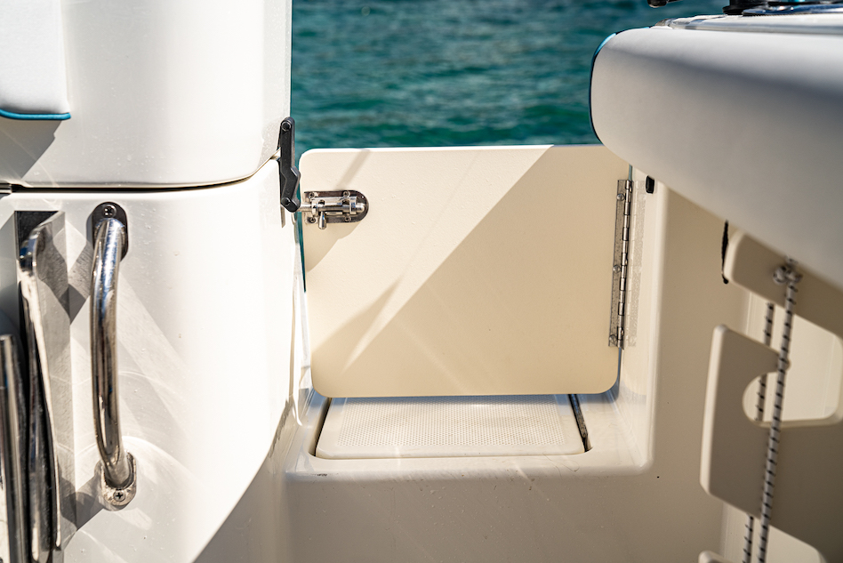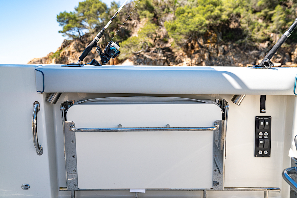 Na jachcie znajdują się wszelkie udogodnienia, niezbędne do owocnego moczenia kija. Na rufie jest szeroki blat do oprawienia „zdobyczy” czy też przygotowania przynęty. Obok dwa „cupholdery” i oczywiście duży zbiornik na żywą przynętę. Pod podłogą kokpitu znajduje się specjalny zbiornik/akwarium na złowione ryby.
