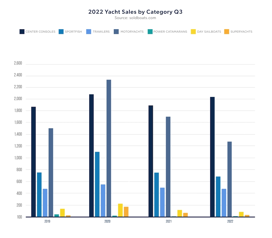 Po osiągnięciu niespotykanego poziomu podczas boomu w 2020 roku, sprzedaż łodzi sportowych spadła do poziomu sprzed pandemii, odnotowując 14% spadek w stosunku do III kwartału 2021 roku. Sprzedaż trawlerów pozostała na tym samym poziomie co w zeszłym kwartale, natomiast sprzedaż żaglówek spadła o 20%.