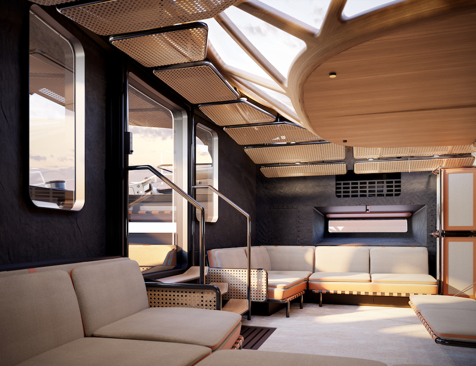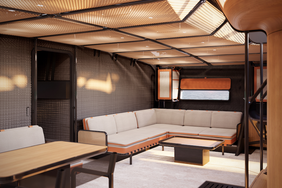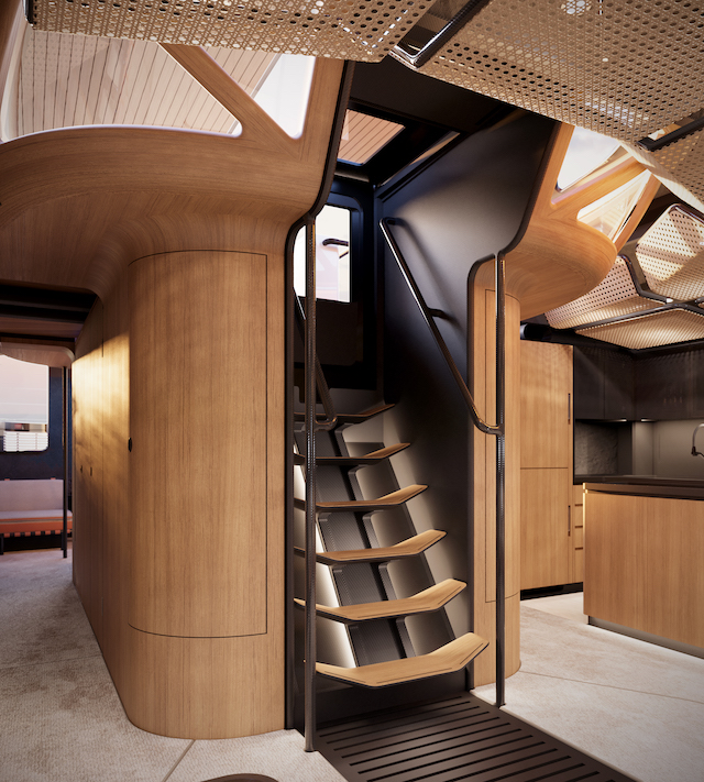 Nowatorskie rozwiązania wnętrza są momentami niesamowite. Możliwość obserwacji od wewnątrz pracujących mechanizmów pokładowych czy też elementy siedziska kabiny prysznicowej wyglądającej jak bambusowe pręty, a w rzeczywistości będących węglowymi rurami stylizowanymi i pomalowanymi jak pędy bambusowe robią niesamowite wrażenie. Całe wnętrze jest po prostu piękne w swej projektowej prostocie i doskonałości. Fantastyczny jest także kokpit. Zbudowany w kształcie ptasiego gniazda. Jest kompozycją węgla i pleksiglasu.