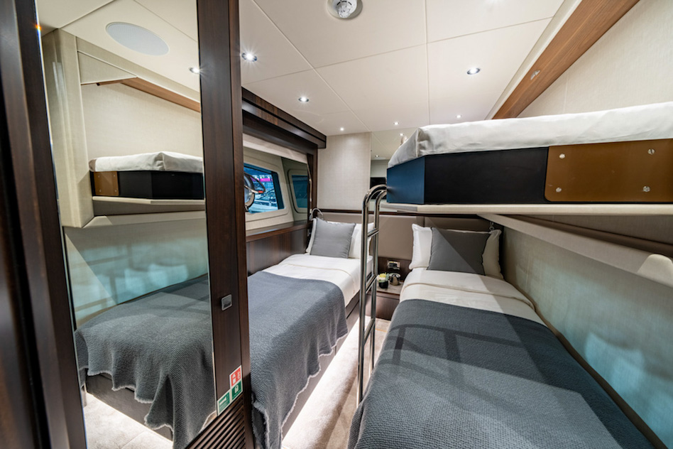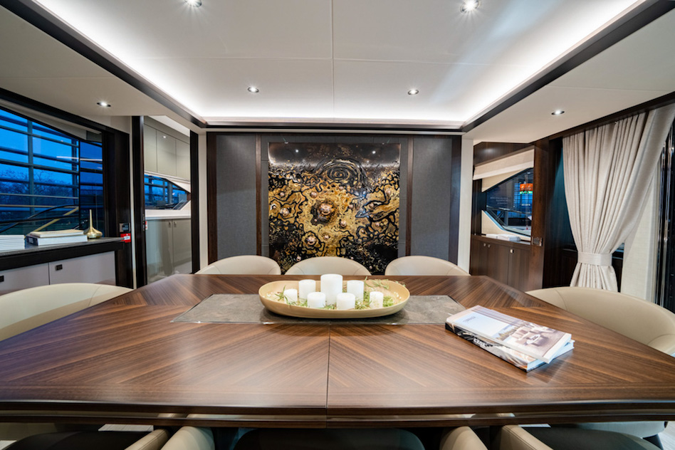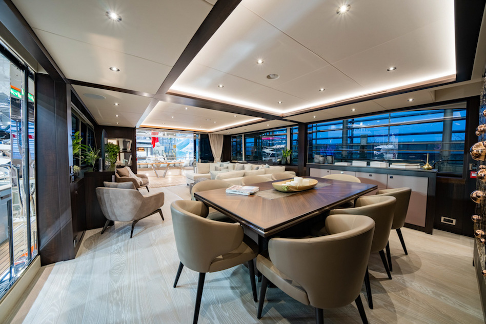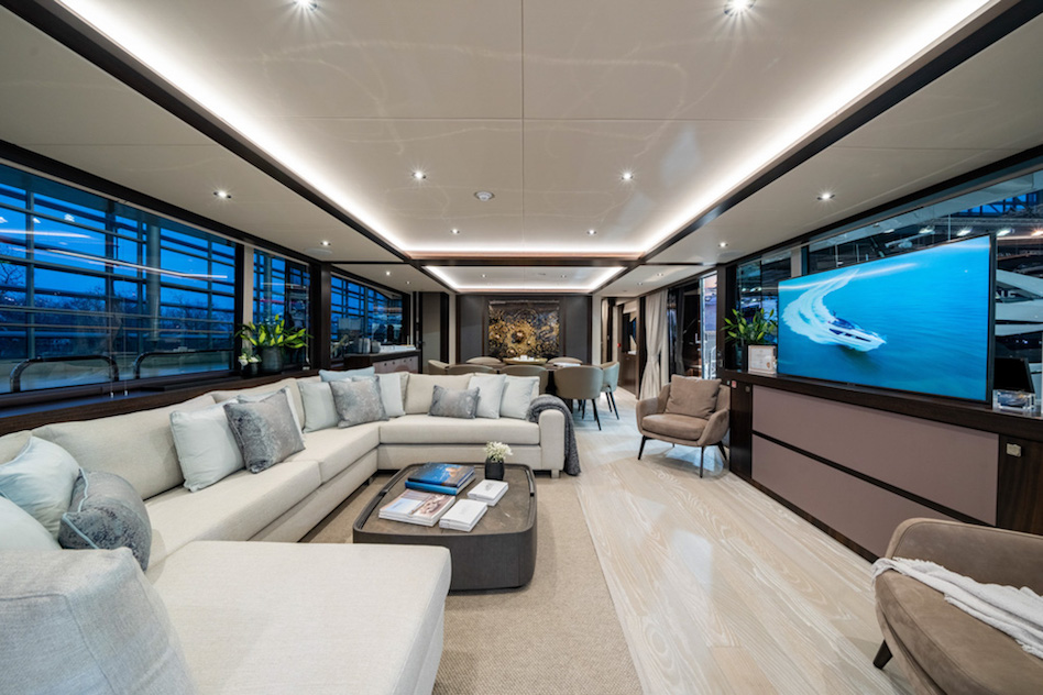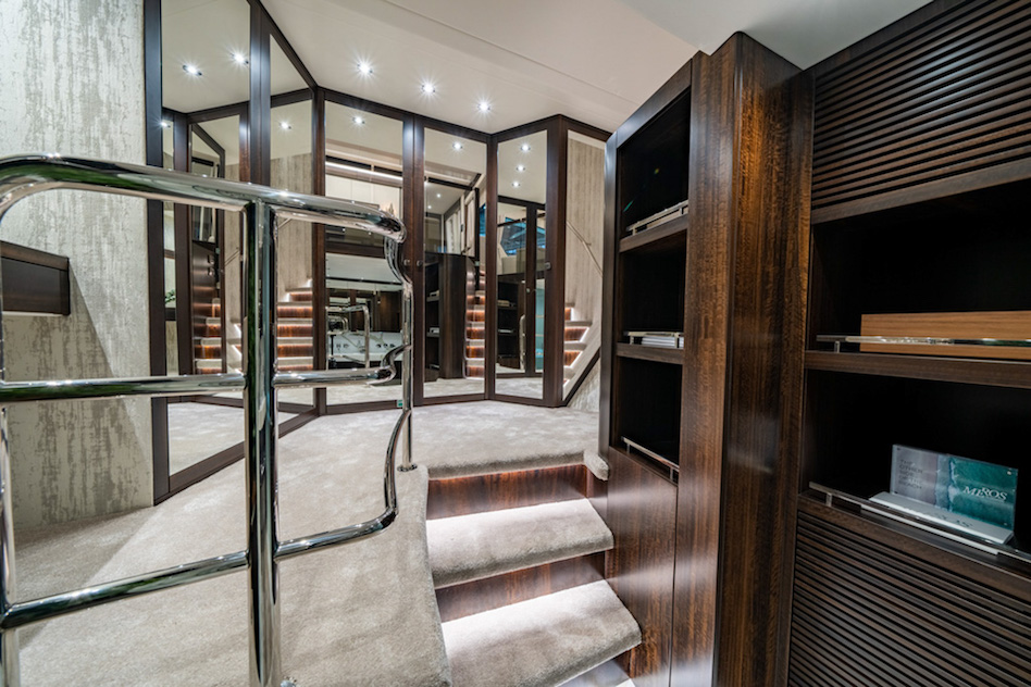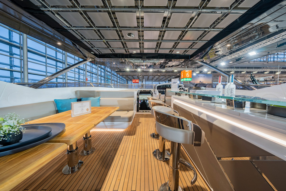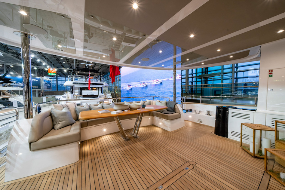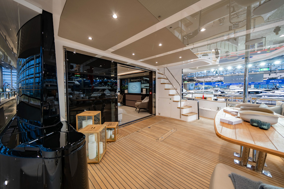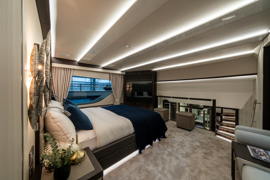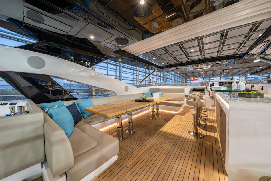 Projekt górnego pokładu został zainspirowany nową serią Ocean firmy Sunseeker, dzięki czemu ma teraz miejsce na jacuzzi, a także skuter wodny i dźwig na flybridge’u. Na górnym pokładzie znajduje się również bar z wystarczającą ilością miejsca dla gości.