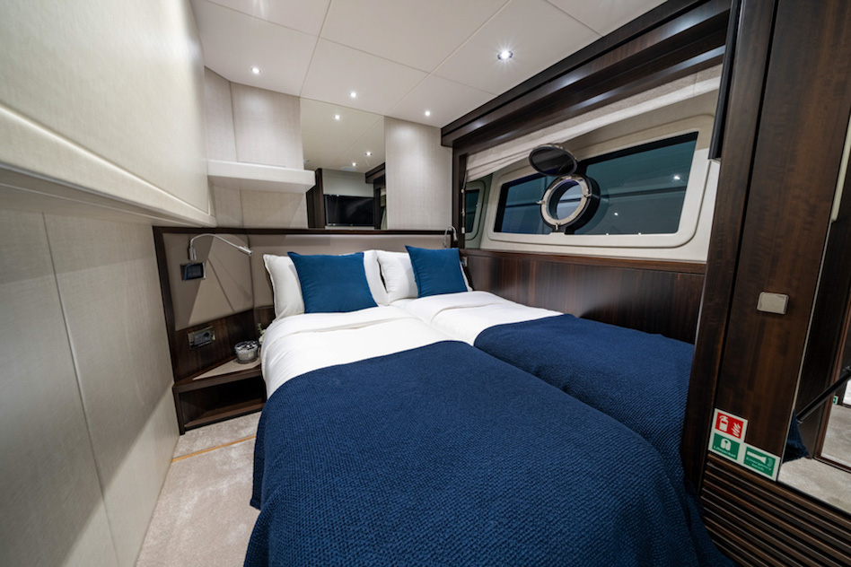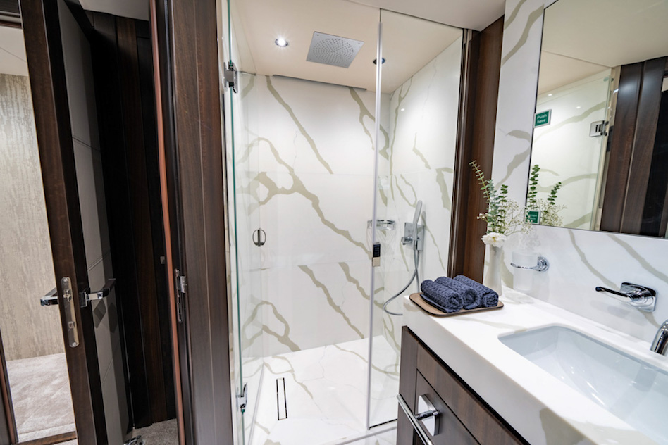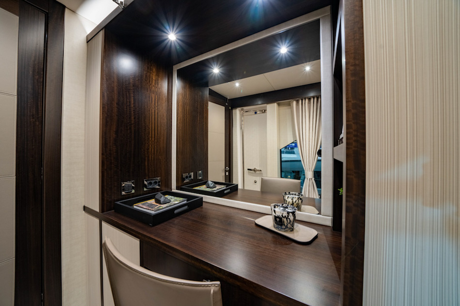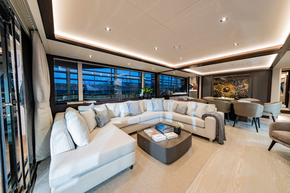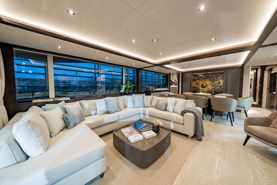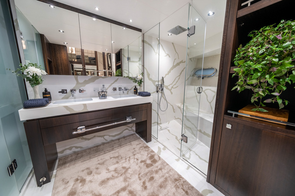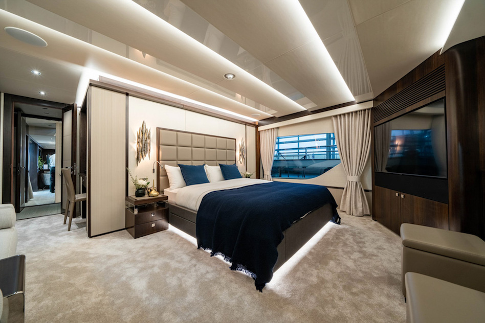Całkowicie przeprojektowano również wystrój wnętrz. W sumie superjacht ma pięć kabin na dwóch pokładach, dzięki czemu jest wystarczająco przestronny dla dwunastu osób. Prawdopodobnie najbardziej rzucającą się w oczy cechą jest główna kabina na pokładzie centralnym, która rozciąga się na trzech poziomach i umożliwia luksusowe mieszkanie na otwartym planie z widokiem na wodę, dzięki czemu nadaje się na dłuższe pobyty.