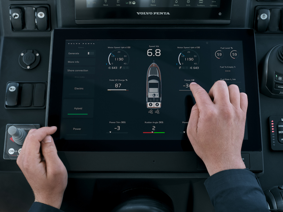 Ta innowacyjna hybrydowa koncepcja wyróżnia się najnowocześniejszym, w pełni zintegrowanym systemem. Obejmuje to dokowanie joysticka Volvo Penta i system dynamicznego pozycjonowania w trybie elektrycznym – zapewniający perfekcyjnie dostrojony poziom precyzji i kontroli. Silniki elektryczne i silniki spalinowe współpracują ze sobą, zapewniając szybką reakcję i płynne przyspieszenie. Kontrola Volvo Penta nad całym systemem – zarówno silnikiem spalinowym, jak i elektrycznym układem napędowym – gwarantuje płynne wrażenia i nienaganną integrację między trybami zasilania.