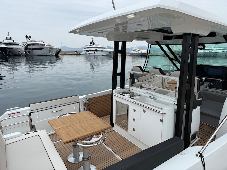 Kolejna nowość opracowana przez polskich designerów. To największy jacht z tej niezwykle popularnej serii motorowych jachtów rodzinnych Jeanneau. Funkcjonalnie jest on podobnie zaprojektowany jak jego mniejszy brat. Ale komfort i wygoda są zdecydowanie większe. Do poruszania mieliśmy potrójny zestaw napędowy składający się z 3 silników zaburtowych Yamaha po 300 KM każdy. Na dolnym pokładzie mamy do dyspozycji 3 kajuty oraz dwie pełne łazienki.